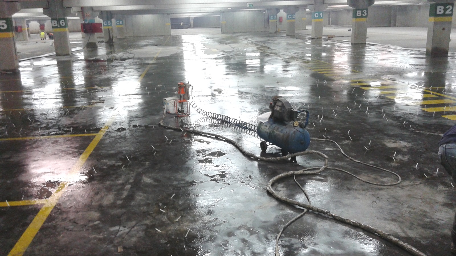 Trabalhamos com reparação de betão, injeção de resinas e reforço estrutural para diferentes tipos de construções.